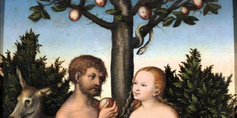 Ադամն ու Եվան զվարճանում են դրախտում, երբ նրանց մոտ է իջնում Աստված և ասում.