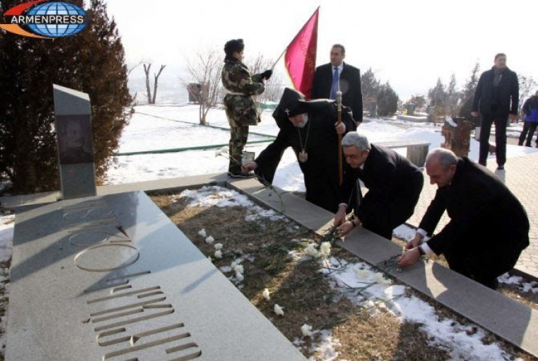 ՀասարակությունՀայոց բանակի կազմավորման 25-րդ տարեդարձի կապակցությամբ Հայաստանի Հանրապետության և Արցախի Հանրապետության բարձրագույն ղեկավարություններն այցելեցին Եռաբլուր, հարգանքի տուրք մատուցել իրենց կյանքը Հայրենիքի անկախության համար զոհաբերած հայորդիների հիշատակին: Արմենպրեսի փոխանցմամբ՝ «Եռաբլուր» պանթեոն այցելեցին ՀՀ նախագահ Սերժ Սարգսյանը, Արցախի Հանրապետության նախագահ Բակո Սահակյանը, Ամենայն Հայոց կաթողիկոս Գարեգին Բ կաթողիկոսը, ԱԺ նախագահ Գալուստ Սահակյանը, վարչապետ Կարեն Կարապետյանը, բարձրաստիճան այլ պաշտոնյաներ: Նրանք ծաղիկներ դրեցին սպարապետ Վազգեն Սարգսյանի, զորավար Անդրանիկի շիրիմներին և Արցախյան պատերազմում զոհված ազատամարտիկների ու զինծառայողների հիշատակը հավերժացնող հուշակոթողին: