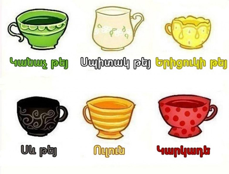 Առաջարկում ենք ձեզ հետաքրքիր և ժամանցային մի թեստ: Եվ թեկուզ, սովորաբար գուշակում են սրճով, այսօր հենց թեյի օգնությամբ դուք կիմանաք ձեր թաքնված ցանկությունների մասին: Եվ այսպես, ո՞ր թեյը կխմեիք.