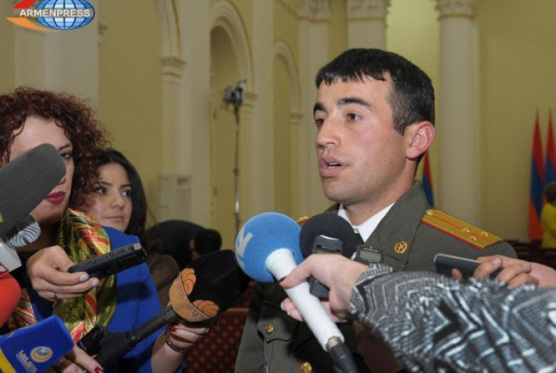 ՀասարակությունԱպրիլյան պատերազմի մասնակից, ավագ լեյտենանտ Սամվել Առաքելյանը ՀՀ նախագահ Սերժ Սարգսյանի կողմից պարգևատրվել է «Մարտական ծառայության» մեդալով: Լրագրողների հետ զրույցում Սամվել Առաքելյանը նշեց, որ 2 տարի է` ինչ պայմանագրային հիմունքներով ծառայում է ՀՀ ԶՈՒ-ում, մասնակցել է ապրիլյան պատերազմին: «Այդ օրերին զոհվել են իմ վաշտի հրամանատար, կապիտան Արմենակ Ուրֆանյանը, իմ զինվորները` Քյարամ Սլոյանը, Անդրանիկ Զո հրաբյանը և Ռոբերտ Աբաջյանը: Ես չեմ կարող նկարագրել, թե այդ օրերին ինչ ապրումներ եմ ունեցել, միայն կարող եմ նրանց ծնողներին շնորհակալություն հայտնել` նման տղաներ դաստիարակելու համար»,- Արմենպրեսի հաղորդմամբ` նշեց Առաքելյանը` հավելելով, որ տղաների զոհվելու պահին ինքը եղել է հարևան դիրքում: