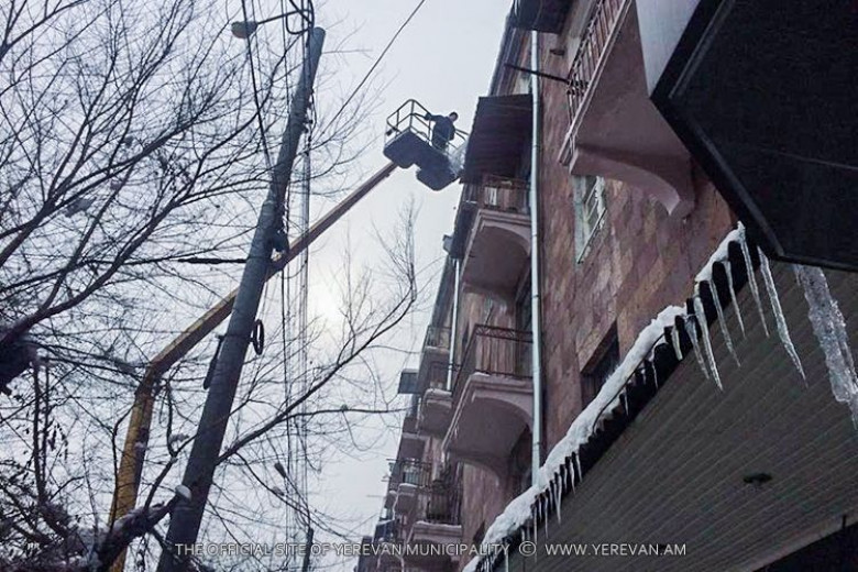 Ձնամաքրմանը զուգահեռ` շարունակվում են հեռացվել շենքերի տանիքներից կախված սառցալեզվակները