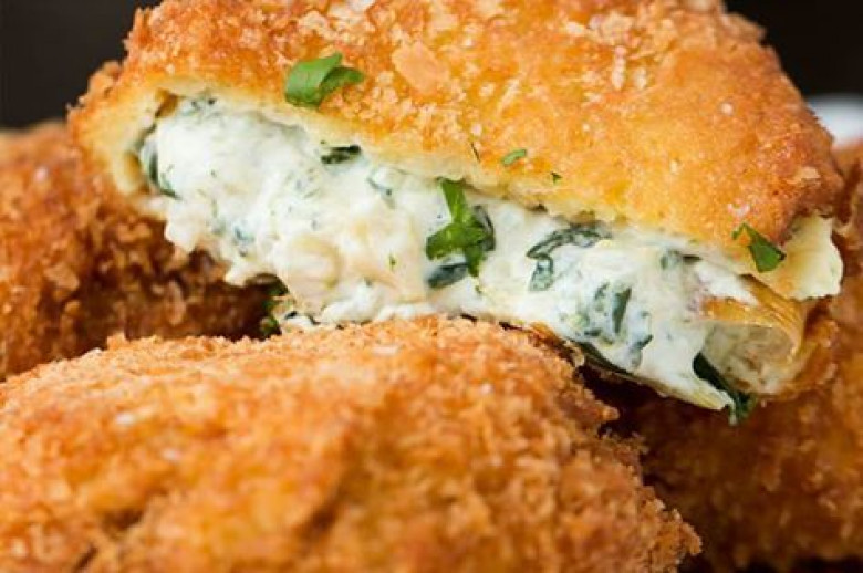 Չիպսը մանրացնել, օղակները թաթախել ալյուրի ու սխտորի փոշու, ձվի ու չիպսի մեջ, տապակել: