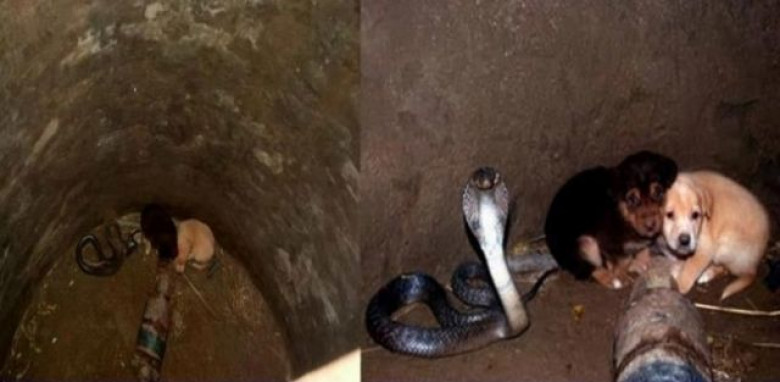 Երկու շնիկ և արքայական կոբրան հայտնվել են մի հորում. դուք չեք հավատա նրան, ինչ կատարվել է դրանից հետո