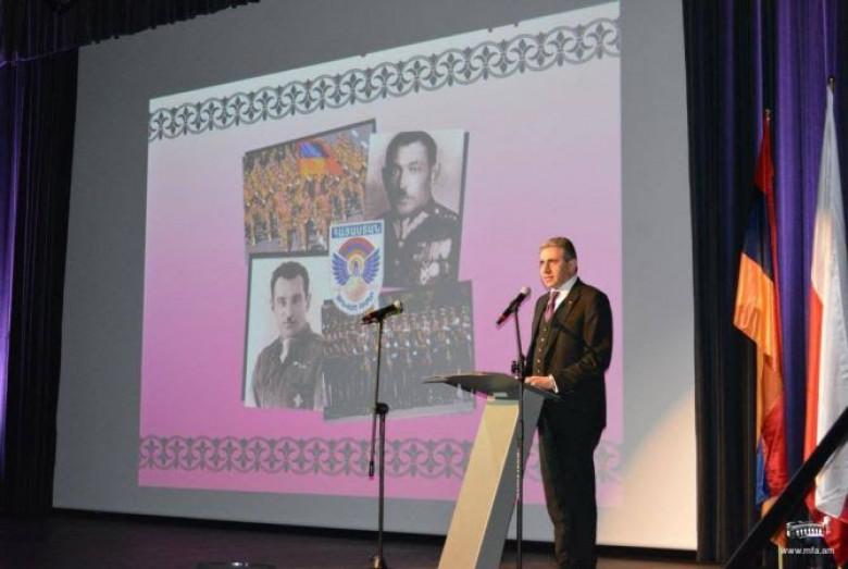 Իր ելույթում դեսպան Ղազարյանը նշեց, որ Լեհաստանում հայկական բանակի 25-ամյա հոբելյանը նշվում է` արժևորելով և գնահատելով նաև այն հայ սպաներին և զինվորականներին, ովքեր յոթ տասնամյակ առաջ բացեցին Աուշվիցի համակենտրոնացման ճամբարի դռները: