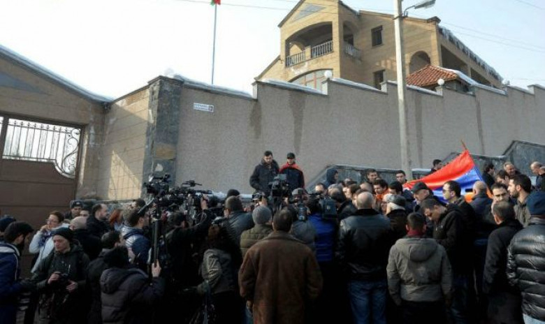 ՀասարակությունՀՀ-ում Բելառուսի դեսպանատան մոտ փետրվարի 8-ին անցկացվեց բողոքի ակցիա՝ Ռուսաստանի և Իսրայելի քաղաքացի բլոգեր Ալեքսանդր Լապշինի՝ Բելառուսից Ադրբեջան արտահանձնման առնչությամբ: