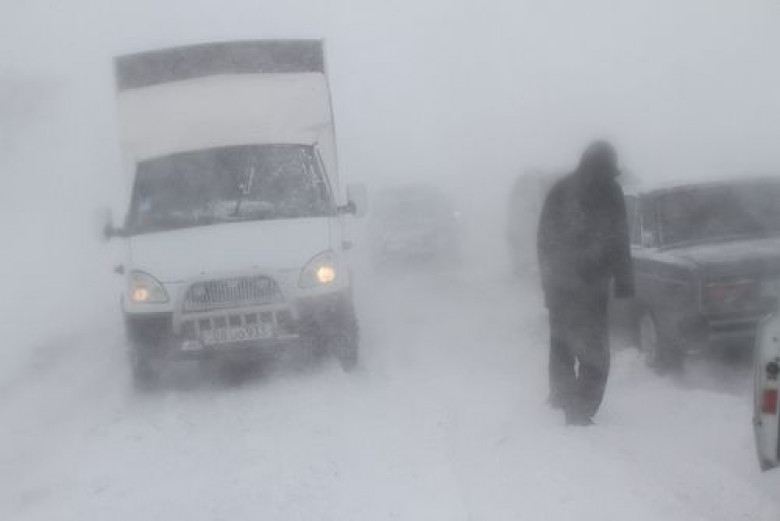 Բեռնատարն արգելափակվել է ձյան մեջ եւ խցանում առաջացրել սահմանամերձ ճանապարհին