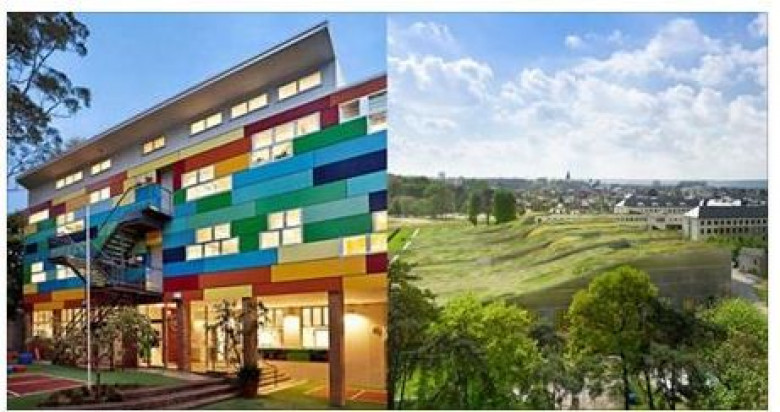 Այս դպրոցի յուրաքանչյուր քառ. մետրը կարծես առանձին մարգագետին լինի: Կառույցի տանիքըամբողջովին պատված է կանաչով: Փոշոտ դասասենյակներում սովորելը վնասակար է երեխաների առողջության համար, այդ իսկ պատճառով նրանց ինչքան հնարավոր է շատ մաքուր օդ է հարկավոր: Տաք եղանակներին դասերը բացօթյա են անցկացվում, հենց մարգագետինների վրա: