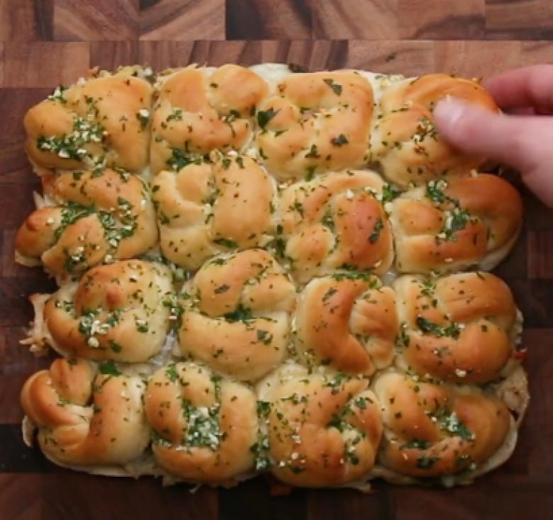 Խմորը մի քանի մասի բաժանել, քարկապ գցել, շարել իրար կողք, թխել ջեռոցում,  մեջտեղից կիսել, ավելացնել միսը, պեստոն, պանիրը: