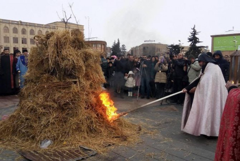 Ժողովրդական սովորության համաձայն օրհնված կրակով վառված խարույկից կամ եկեղեցում վառվող մոմերից ժողովուրդը մոմեր է վառում եւ տանում տուն՝ որպես Քրիստոսի փրկարար լույսի խորհրդանիշ: Խարույկը վառելուց հետո հրապարակում հավաքվածները պարեցին խարույկի շուրջ: