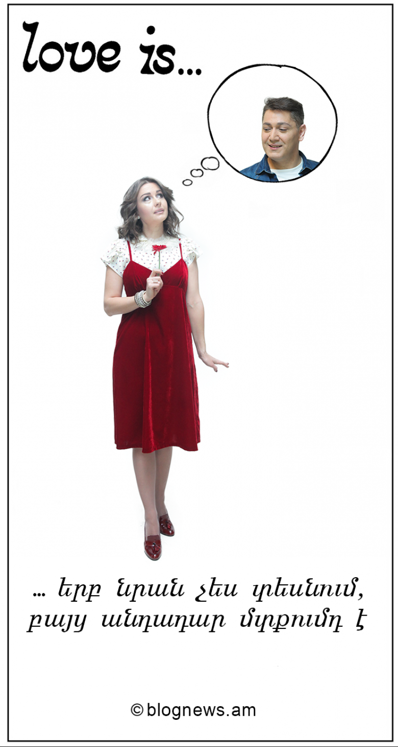 Սիրո տոների հետ կապված՝ BlogNews.am-ը ներկայացնում է հայտնի Love is... մաստակների պիտակների ոճում ֆոտոշարքը: Հայտնի զույգերը հայտնվել էին մաստակի հերոսների կերպարում: Գոռը և Մերին, Յուլիան և Արտյոմը, Կարոն և Ռիտան, Նարեկը և Մաշան ամբողջությամբ կերպարի մեջ մտան: Օրինակ՝ Գոռը հետևում էր, որ Մերիի կերպարն անթերի լինի, Յուլան էլ, որ Արտյոմի դեմքի արտահայտությունը լուսանկարի ոճին համապատասխան լինի, Կարոն և Ռիտան էլ այնքան ուրախ էին, որ հաճախ շեղվում էին լուսանկարի հիմնական ոճից, Նարեկը և Մաշան էլ իրենց հատուկ հանգստությամբ և հումորով մոտեցան, դե իսկ ամենադժվարը Շողերի համար էր, քանի որ Գրիշա Աղախանյանը ԱՄՆ-ում էր :)