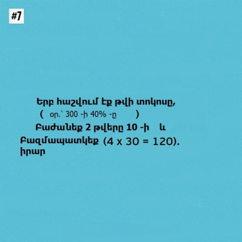 6. Թվի տոկոսի հաշվման պարզ եղանակ