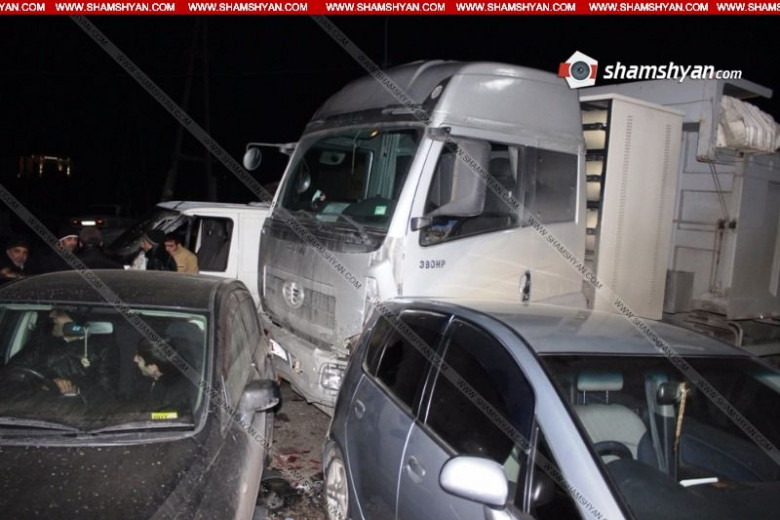Խոշոր ավտովթար Արարատի մարզում. «Ինեսսա» սուպերմարկետի մոտ 54-ամյա վարորդը՝ FAW մակնիշի խոշոր բեռնատարով մեքենաների ջարդի հեղինակ. բախվել է 6 ավտոմեքենաների. ՖՈՏՈՌԵՊՈՐՏԱԺ, ՏԵՍԱՆՅՈՒԹ