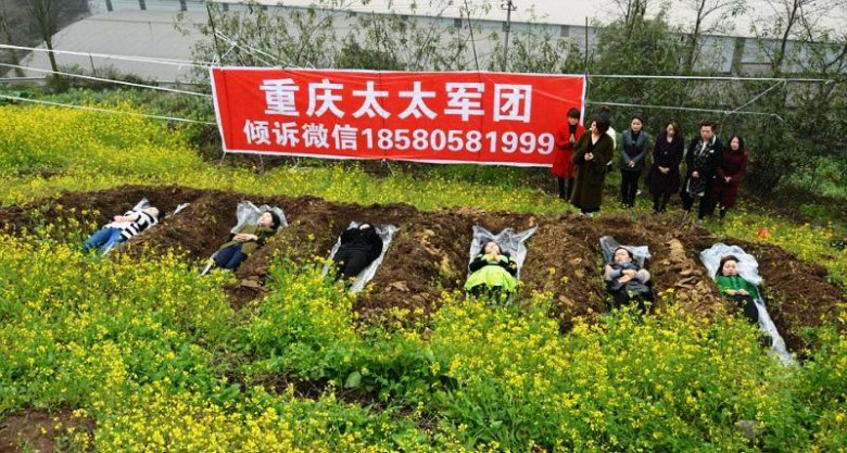 LifestyleԱռաջին հայացքից խմբակային թաղում հիշեցնող այս լուսանկարներն իրականում գերեզմանային մեդիտացիայի ընթացքից արված կադրեր են: Լքված ու բաժանված չինացի կանայք շաբաթը մեկ անգամ պառկում են նմանատիպ փոսերի մեջ, այդպիսով «թաղելով» իրենց հին կյանքն ու նախկին դժվարությունները: