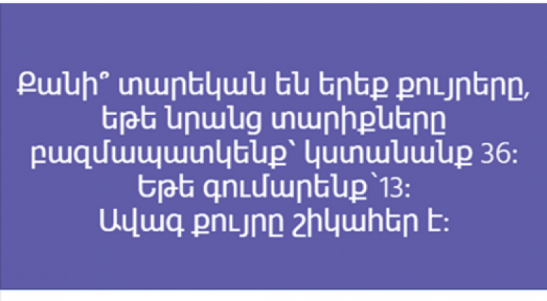 Եթե նրանց տարիքները բազմապատկենք կստանանք` 36: