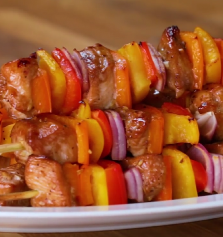 Բանջարեղենն ու միսը անցկացնել փայտիկների վրա;