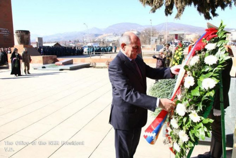 ՀասարակությունՍումգայիթի ջարդերի 29-րդ տարելիցի կապակցությամբ Նախագահ Բակո Սահակյանը փետրվարի 28-ին Հայ Առաքելական Եկեղեցու Արցախի թեմի առաջնորդ Պարգեւ արքեպիսկոպոս Մարտիրոսյանի եւ հանրապետության բարձրաստիճան ղեկավարության ուղեկցությամբ այցելել է Ստեփանակերտի հուշահամալիր եւ ծաղիկներ դրել անմեղ զոհերի հիշատակը հավերժացնող հուշակոթողին:
