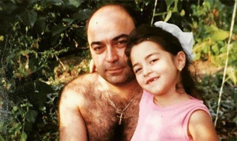 Լուսանկարում երգչուհին հոր գրկում է: