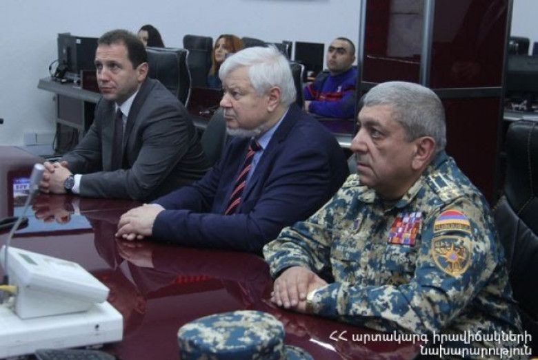 Հանդիպման ավարտին Դ. Տոնոյանն ու Ա. Կասպրչիկն այցելեցին ՀՀ ԱԻՆ Ճգնաժամային կառավարման ազգային կենտրոն, որտեղ հյուրին ներկայացվեցին կենտրոնի գործունեությունն ու տեխնիկական հագեցվածությունը: