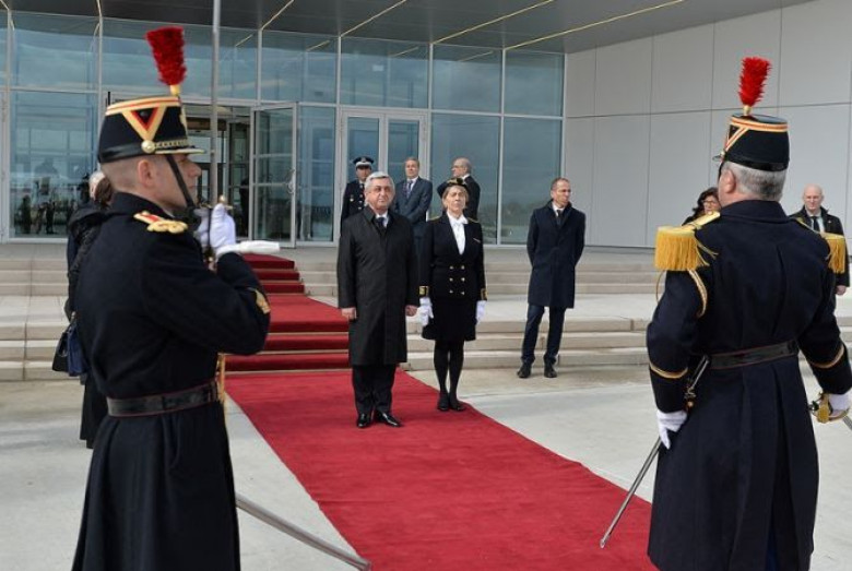 Փարիզի «Ինվալիդների» պալատի «Պատվո» հրապարակում տեղի է ունեցել Հանրապետության Նախագահի դիմավորման պաշտոնական արարողությունը: Նախագահ Սարգսյանը և նրա գլխավորած պատվիրակության անդամներն արարողությունից հետո մեկնել են Ֆրանկոֆոնիայի միջազգային կազմակերպության գրասենյակ` հանդիպում ունենալու կազմակերպության գլխավոր քարտուղար Միկայել Ժանի հետ, որով կմեկնարկի Նախագահ Սերժ Սարգսյանի պաշտոնական այցի ծրագիրը: