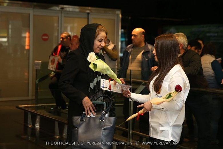 ՀասարակությունԿանանց միջազգային օրվա առիթով Երևանի քաղաքապետարանի շնորհավորանքները մեկնարկել են «Զվարթնոց» օդանավակայանում: Երևան ժամանող բոլոր կանանց և աղջիկներին ժամանման սրահում սպասվում են անակնկալներ: Նրանց դիմավորում են բարձր տրամադրությամբ և նվիրում ծաղիկներ ու շնորհավորական բացիկներ: