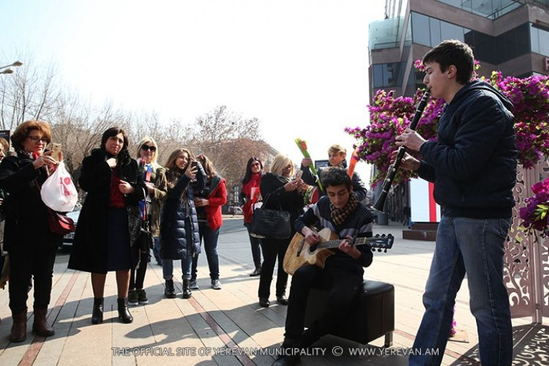 Մարտի 8. երևանյան ջերմ շնորհավորանքներ ու տոնական ծաղիկներ` կանանց և աղջիկներին