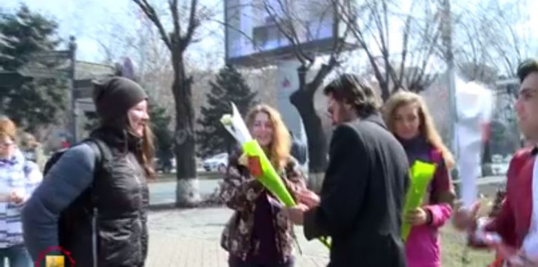 Ծաղիկներ՝ անցորդ կանանց և աղջիկներին