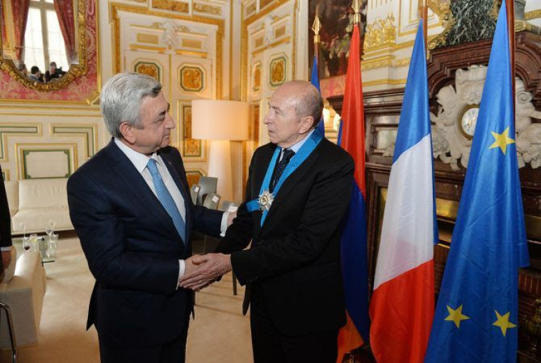 Հանդիպման ավարտին Նախագահ Սերժ Սարգսյանը Լիոնի քաղաքապետ Ժերար Կոլոնին պարգևատրել է Պատվո շքանշանով` հայ-ֆրանսիական բարեկամական հարաբերությունների ամրապնդման և զարգացման գործում ներդրած նշանակալի ավանդի համար: