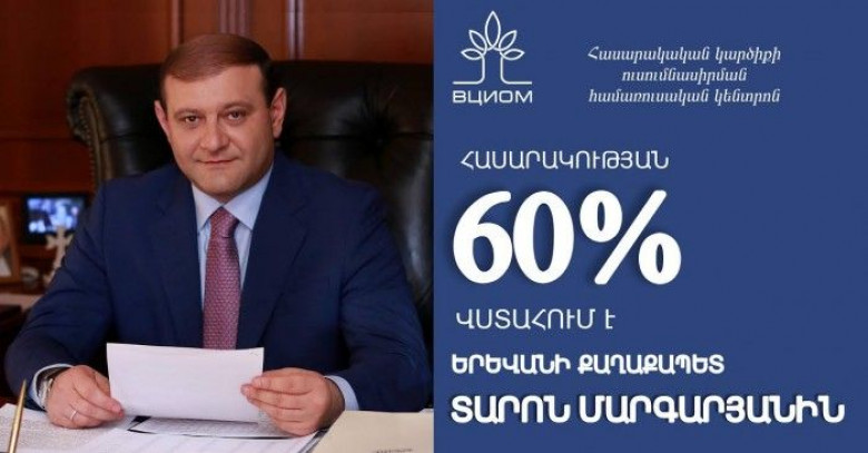 Տարոն Մարգարյանին վստահում է հասարակության 60%-ը. Հասարակական կարծիքի ուսումնասիրման համառուսական կենտրոն