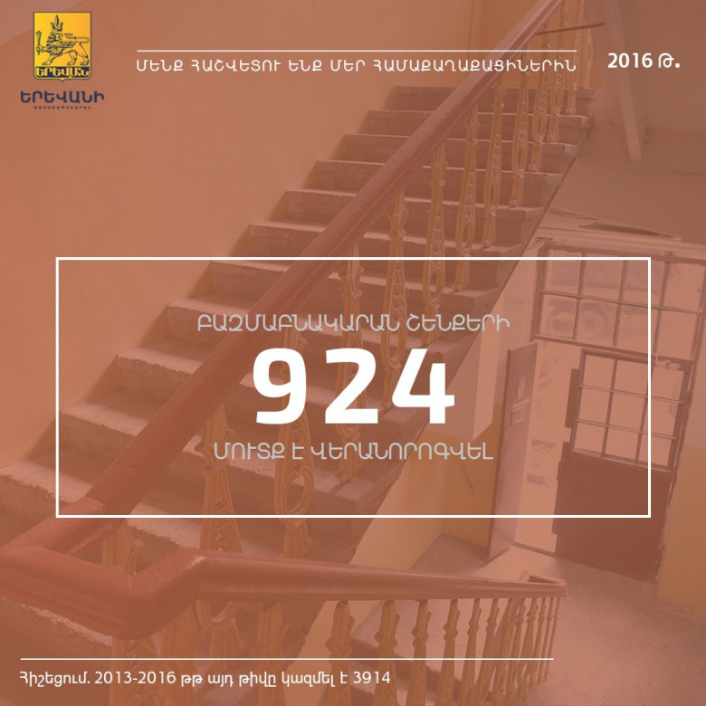 «Մենք հաշվետու ենք մեր համաքաղաքացիներին». մայրաքաղաքի բազմաբնակարան շենքերի 2016 թվականին վերանորոգված մուտքերի քանակը