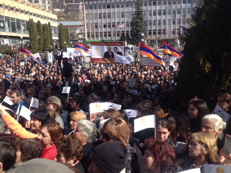 Հաղարծինում Գ.Ծառուկյանին առաջնորդեցին ձիավորները՝ դաշինքի դրոշակները վեր պարզած: Ծառուկյանը, մեկ առ մեկ պատասխանելով գյուղացիներին հուզող հարցերին, նշեց, որ, ընդհանուր առմամբ, բոլոր գյուղերում խնդիրները նմանատիպ են, բայց ինքը լուծման տարբերակը գիտի, անհրաժեշտ է միայն ապրիլի 2-ին գնալ ընտրատեղամաս և ընտրություն կատարել՝ «խաթր չանելով» ոչ մի ծանոթ բարեկամի, քավոր սանիկի, այլ նայելով մարդու արած գորին: