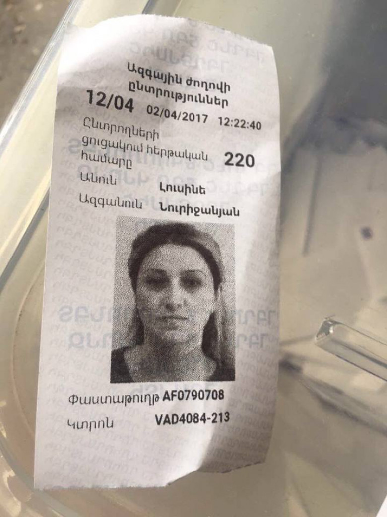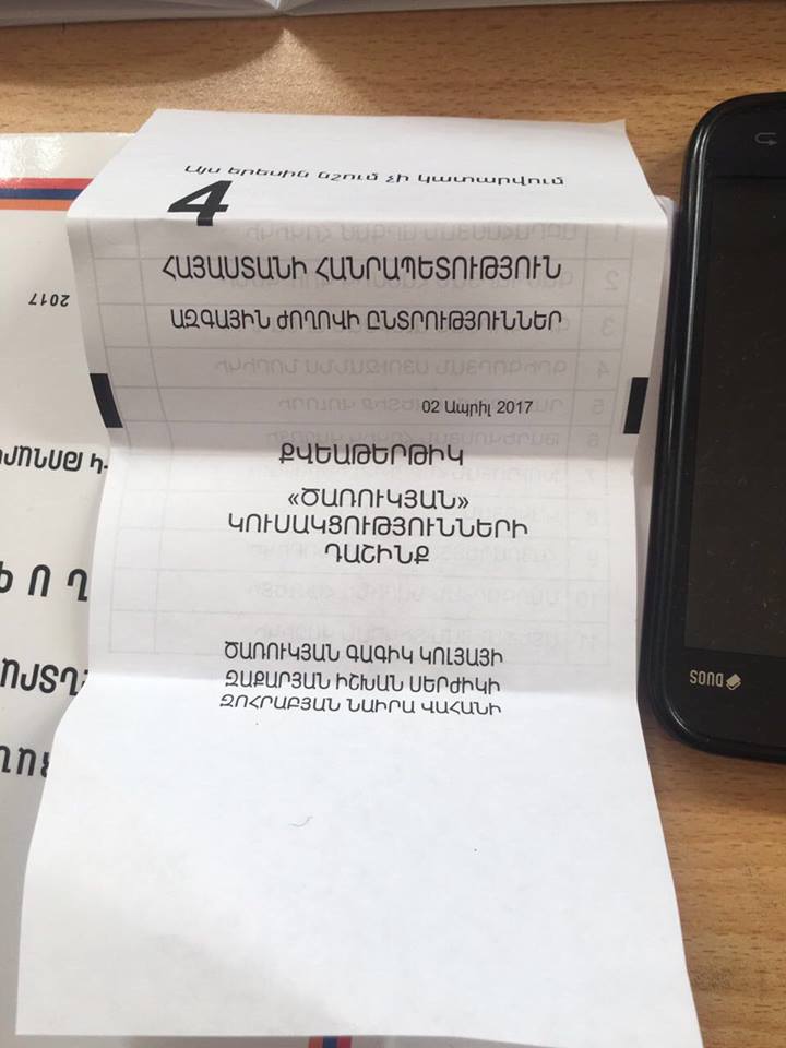 «Ծառուկյան» դաշինքի քվեաթերթիկը ընտրողի գրպանում