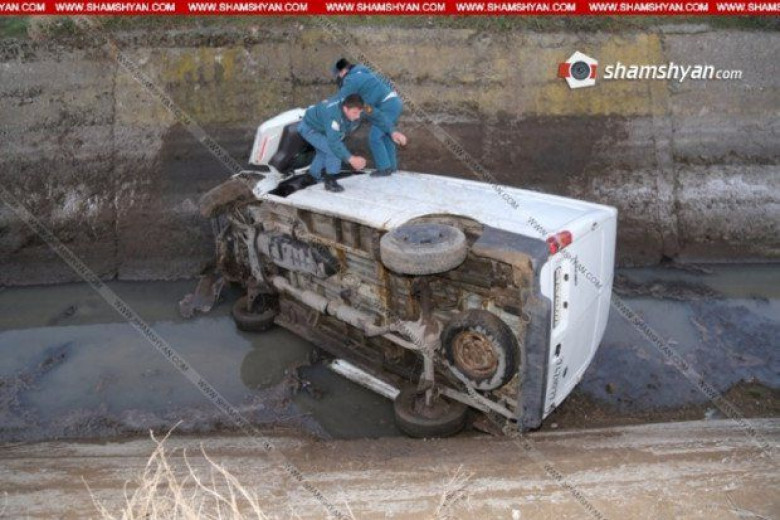 Պարզվել է, որ «Ford Transit» մակնիշի 74 ZI 777 համարանիշի ավտոմեքենան դուրս է եկել ճանապարհի երթեւեկելի գոտուց եւ ընկել ջրանցքը. վարորդն արգելափակվել է ավտոմեքենայի մեջ: