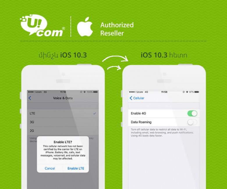 Apple ընկերությունը սերտիֆիկացրել է Ucom-ի 4G/ LTE Advanced ցանցը