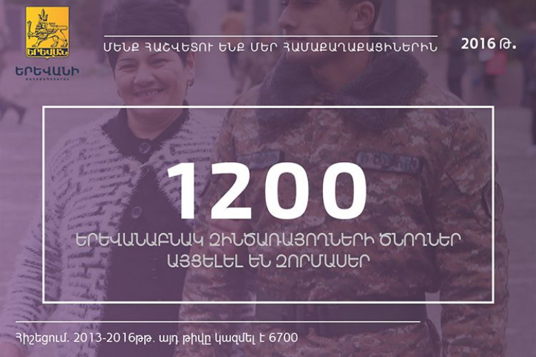 2016 թվականին Երևանի քաղաքապետարանի նախաձեռնությամբ 1200 երևանաբնակ զինծառայողների ծնողներ հերթական անգամ այցելել են սահմանամերձ զորամասերում ծառայող իրենց որդիներին: Արդեն ավանդական դարձած այս ծրագրի շրջանակում 2013-2016թթ. սահմանամերձ զորամասեր ընդհանուր առմամբ այցելել են 6700 երևանաբնակ զինծառայողների ծնողներ: