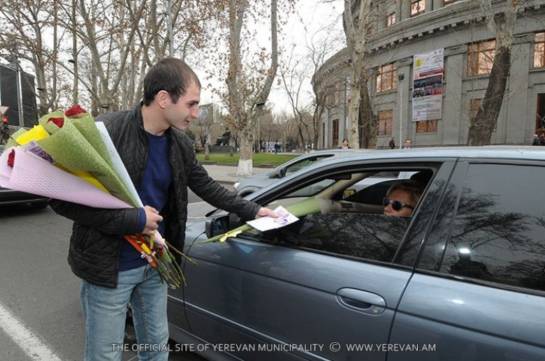 ՀասարակությունՄայրության և գեղեցկության տոնին Երևանի քաղաքապետարանի ուշադրությունից դուրս չեն մնացել նաև կին վարորդները: Մայրաքաղաքի փողոցների հատման վայրերում և խաչմերուկներում լուսանցային կարմիր ազդանշանի տակ կանգնած մեքենաների կին վարորդներին և ուղևորասրահում գտնվող կանանց նվիրել են ծաղիկներ և Երևանի քաղաքապետ Տարոն Մարգարյանի շնորհավորական բացիկներ, ինչը հաճելի անակնկալ է դարձել վերջինների համար` պարգևելով բարձր տրամադրություն: