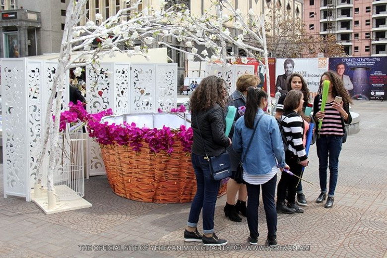 ՀասարակությունԵրևանյան փողոցներում շարունակվում են քաղաքապետարանի կողմից մատուցվող անակնկալները: Հյուսիսային պողոտայում, ինչպես նաև Աբովյան և Թումանյան փողոցներին հարակից տարածքներում, Արամ Խաչատրյանի արձանի հարևանությամբ և Շառլ Ազնավուրի անվան հրապարակի հարակից հատվածում տոնական ձևավորված զամբյուղներից տարածքներում զբոսնող կանանց և աղջիկներին նվիրել են ծաղիկներ և Երևանի քաղաքապետի շնորհավորական բացիկներ:
