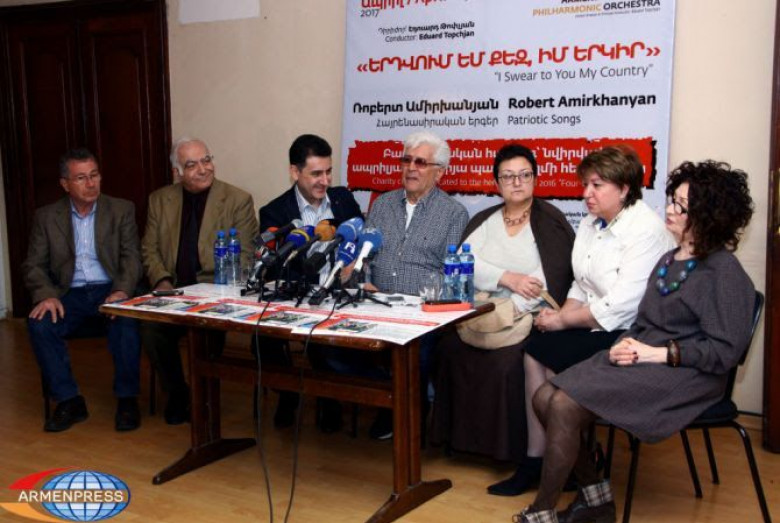 ՀասարակությունՀայաստանի ազգային ֆիլհարմոնիկ նվագախմբի, կոմպոզիտոր Ռոբերտ Ամիրխանյանի նախաձեռնությամբ և ՀՀ մշակույթի նախարարության աջակցությամբ ապրիլի 10-ին Արամ Խաչատրյան համերգասրահում տեղի կունենա «Երդվում եմ քեզ, իմ երկիր» խորագրով բարեգործական համերգը` ի խոնարհումն ապրիլյան պատերազմի բոլոր հերոսներին: Համերգի մասին ապրիլի 8-ին լրագրողների հետ հանդիպմանը խոսեցին ծրագրի նախաձեռնողները: