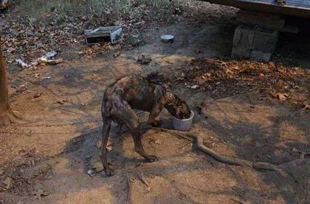 Թոմ անունով այս շունը թոկից կապված է եղել ավելի քան 4 տարի: Նրա տիրոջն առանձնապես չէր հետաքրքրում, որ իր շունը տառապում է մի շարք հիվանդություններով, գրեթե կմախքի է վերածվել և ուր որ է կսատկի: