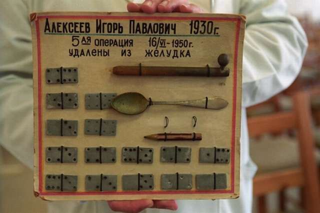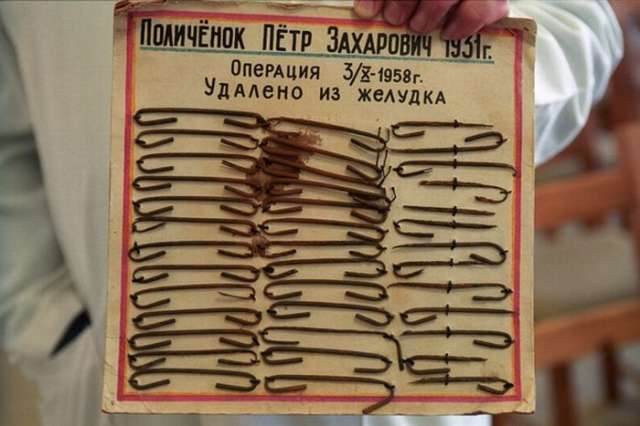 Լուսանկարներն արված են բանտային հիվանդանոցում: Այս առարկաները ինչ-ինչ պատճառներով կուլ են տվել կալանավորները: Ոմանք դա արել են հիվանդանոցում պառկելու համար և ավելի մեղմ պայմաններում հայտնվելու, որոշներն էլ՝ բանտախցի մյուս կալանավորներից մեկուսացվելու: