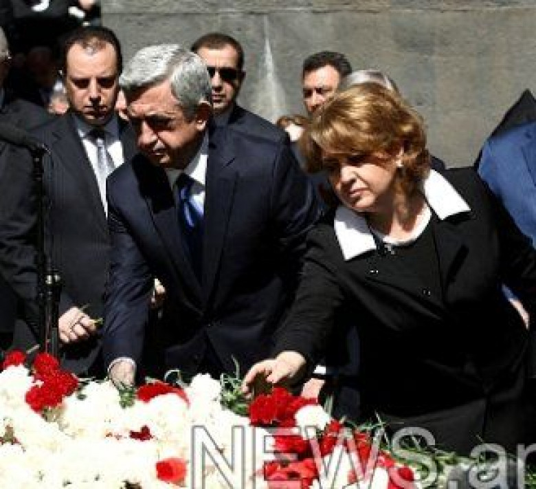 ՀասարակությունՀայաստանի նախագահ Սերժ Սարգսյանն ու առաջին տիկին Ռիտա Սարգսյանը ապրիլի 24-ի առավոտյան այցելել են «Ծիծեռնակաբերդ» հուշահամալիր եւ հարգանքի տուրք մատուցել 1915թ. Մեծ եղեռնի զոհերի հիշատակին։ Նախագահը ծաղկեպսակ է դրել հուշահամալիրին: