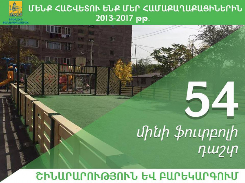 2013-2017թթ. Երևանի բակերում ստեղծվել է 54 մինի ֆուտբոլի դաշտ