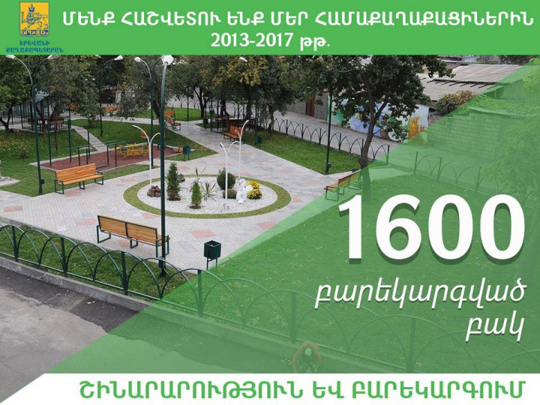 ՀասարակությունԵրևանի քաղաքապետարանը շարունակում է «Մենք հաշվետու ենք մեր համաքաղաքացիներին» խորագրի ներքո Երևանի քաղաքապետարանի ծրագրերով մայրաքաղաքում իրականացված 2013-2017թթ. աշխատանքների ամփոփ ներկայացումը: