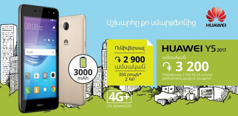 ՀասարակությունUcom ընկերության շարժական սարքերի տեսականին համալրվել է 2017 թվականի նորագույն Huawei Y5 4G սմարթֆոնով: 3000 միլիամպեր հզորություն ունեցող մարտկոցը թույլ կտա ավելի երկար վայելել հինգ-դյույմանոց HD էկրանով և 8-մեգապիքսելանոց տեսախցիկով օժտված սմարթֆոնի աշխատանքը: