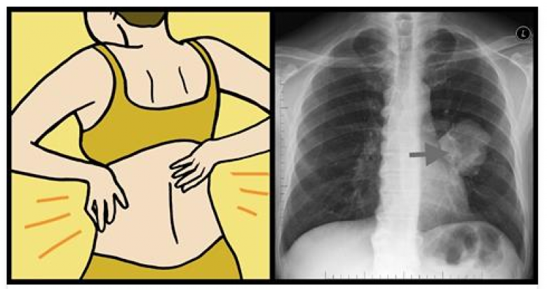 Հավանաբար դուք չեք կապում մեջքի ցավերը թոքերի հետ, սակայն կանանց մոտ մեջքի և ուսերի հատվածում սուր ցավերը կարող են ուղիղ կապ ունենալ շնչառական համակարգի խնդիրների հետ: Պատճառն այն է, որ կանայք ավելի հակված են ունենալ թոքերի քաղցկեղի ադենակարցինոմա տարատեսակը: Քաղցկեղի այս տարատեսակի ուզուցքներն առաջանում են թոքերի արտաքին շերտերում և կարող են ճնշում գործադրել կողոսկրերի և ողնաշարի վրա: