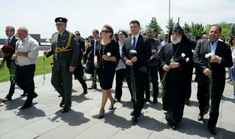 Նրանց հետ միասին հուշահամալիր էին այցելել Հայաստանի տարբեր մարզերի հունական համայնքների ներկայացուցիչները: «Մենք հիշում ենք Պոնտոսի հույների ցեղասպանությունը» գրությամբ պաստառներով համայնքի ներկայացուցիչները պաշտոնյաների հետ շարժվեցին դեպի հուշահամալիրի անմար կրակը, ապա ծաղիկներ խոնարհեցին՝ ի հիշատակ ցեղասպանության զոհերի: Հոգեւորականները ցեղասպանության զոհերի հոգեհանգստյան կարգ մատուցեցին: