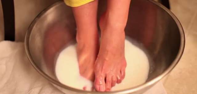 Կես լիտր կաթի մեջ ավելացրեք 2-3 թեյի գդալ սոդա: Ոտքերը թրջեք այդ լուծույթի մեջ և վայելեք հրաշալի արդյունքը: