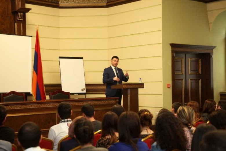 ՀՀ Աժ փոխնախագահը կարևորել է նոր սերնդի շրջանում ազգային և քրիստոնեական արժեքների արմատավորումն ու զարգացումը: Թեմատիկ դասախոսությունից հետո Անդրանիկ Մարգարյան-ի անվան քաղաքական դպրոցի ունկնդիրները տարբեր խնդիրների շուրջ իրենց հարցերն են ուղղել ՀՀ ԱԺ փոխնախագահին: