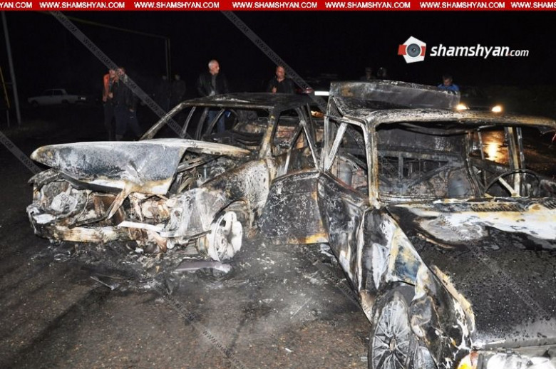 Ինչպես հայտնում է ֆոտոլրագրող Գագիկ Շամշյանը, բախման հետևանքով ավտոմեքենաներում հրդեհ է բռնկվել և ամբողջովին վերածվել է մոխրակույտի: