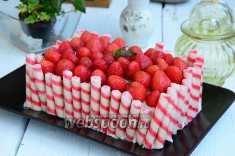 Խմորի վրա քսել կրեմը, շարել բանանը, այդպես անել բոլոր շերտերը, վերջում կրեմը քսել, շոկոլադը քերել, տորթի կողքերը շարել ձողիկները, կենտրոնում շարել ելակները: