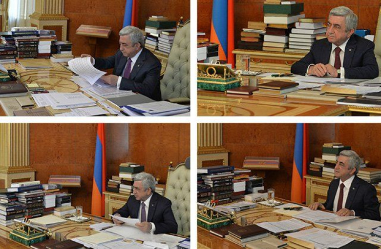 ՀՀ նախագահ Սերժ Սարգսյանը նոր կառավարության ձևավորումից հետո  նախարարներին և տարբեր գերատեսչությունների ղեկավարներին ընդունում է իր աշխատասենյակում։ Արարողակարգային այդ լուսանկարները, բնականաբար, ՀՀ նախագահի պաշտոնական կայքի միջոցով տարածվում են, և շատերի ուշադրությունն են գրավում հայալեզու և օտարալեզու այն գրքերը, որոնք խնամքով դրված-դասավորված են հանրապետության ղեկավարի սեղանին: